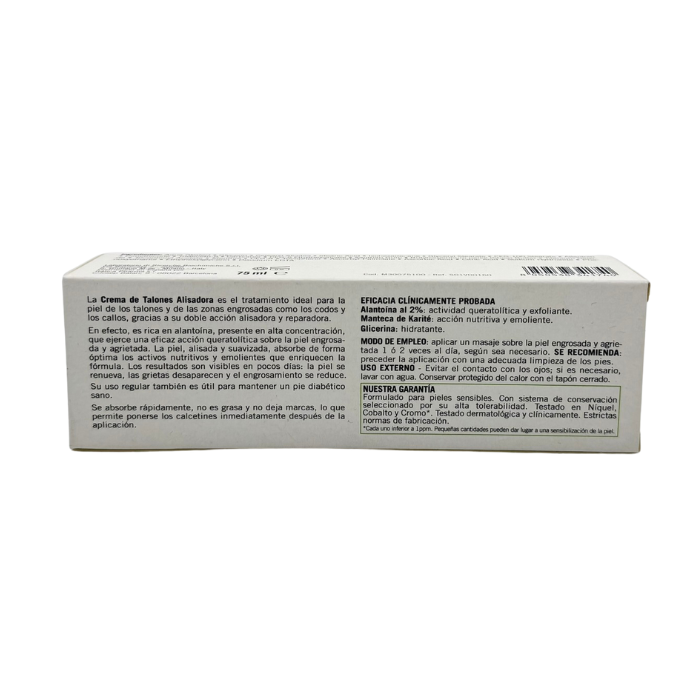 Crema Talones Farmacia Yébenes es un tratamiento intensivo para alisar, nutrir y reparar zonas engrosadas y agrietadas como talones, codos y callosidades. Al alisar y suavizar la piel, se optimiza la absorción de los nutrientes activos. También es adecuado para el pie sano del diabético, ya que su uso regular ayuda a mantener la piel suave y nutrida, ayudando a prevenir posibles complicaciones.