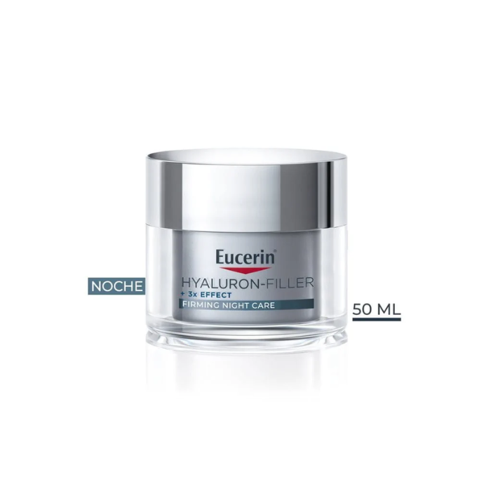 Noche: Tras la limpieza facial, aplicar la crema Eucerin Hyaluron Filler +3x Effect de noche para favorecer la regeneración celular.