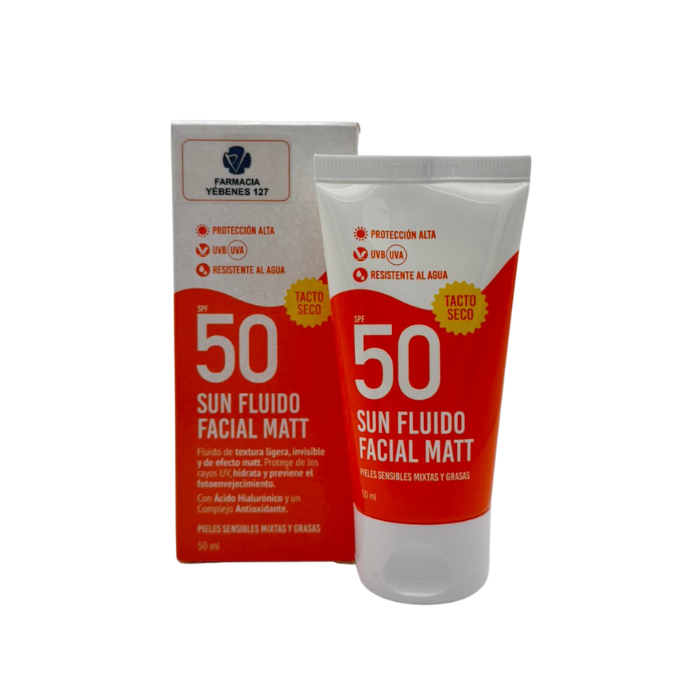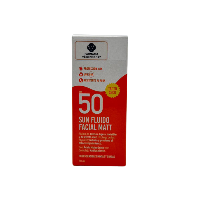 Fluido Facial Matificante SPF50+ Farmacia Yébenes 127: Pieles Sensibles, Mixtas y Grasas.