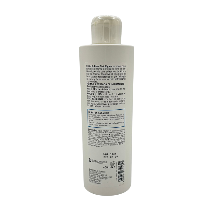 Gel Íntimo Fisiológico Farmacia Yébenes está indicado para la higiene íntima diaria de toda la familia, incluidos los hombres. Preserva el equilibrio de las mucosas respetando el pH fisiológico (5,5) ejerciendo una acción refrescante y protectora.