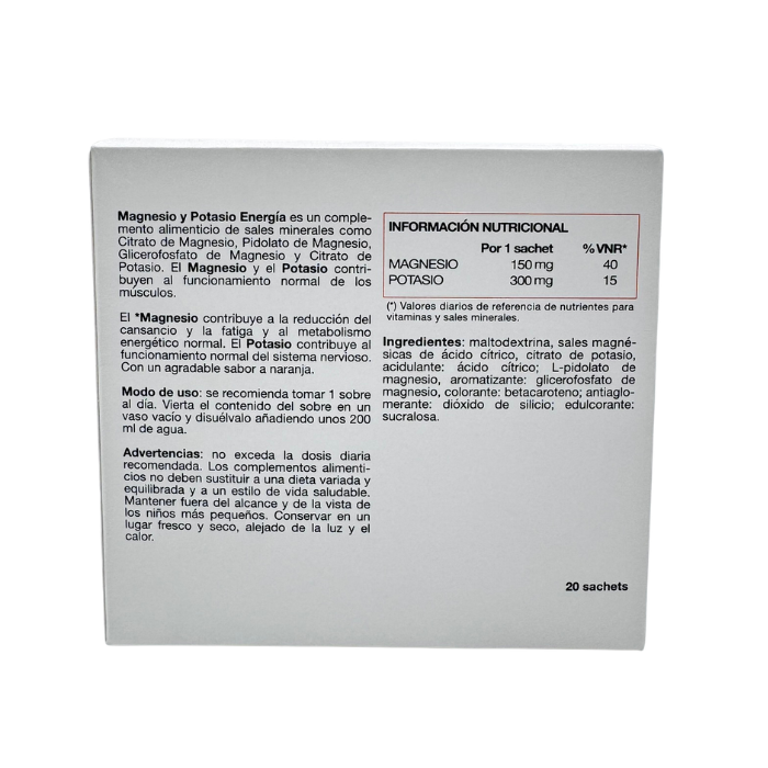 El magnesio contribuye a la reducción del cansancio y la fatiga, al funcionamiento normal de los músculos y del sistema nervioso, además de participar en el metabolismo energético. Por su parte, el potasio es clave para el mantenimiento de la función muscular normal y el equilibrio de los líquidos en el organismo.