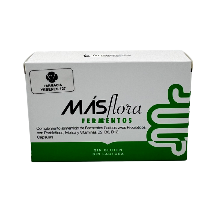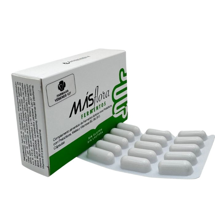 Más Flora Fermentos es un complemento alimenticio en cápsulas para tratar la alteración de la microbiota en el organismo que se puede manifestar de diferentes formas, como por ejemplo, diarrea o estreñimiento, hinchazón intestinal y ente otros trastornos alimenticios, y esto mediante a sus principios activos.