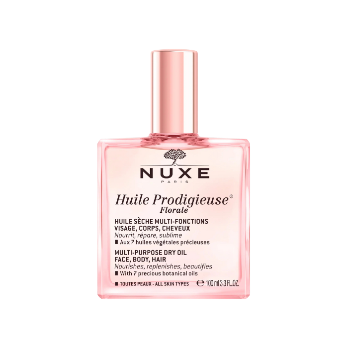 Descubre la frescura del Huile Prodigieuse® Florale, el aceite seco multifunciones de Nuxe que se ha convertido en un básico de belleza en todo el mundo. Esta variante florale mantiene la misma eficacia nutritiva que el aceite original, pero envuelve tu piel en una fragancia delicada, floral y chispeante que evoca la primavera.