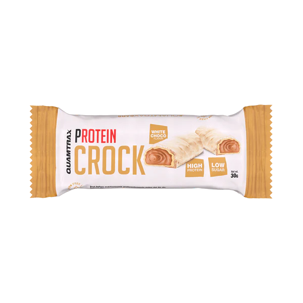 ¿Quién dijo que cuidar la línea era aburrido? La Protein Crock White Choco de Quamtrax es la evolución del snack saludable. Un delicioso barquillo crujiente relleno de una suave crema de chocolate blanco que te hará olvidar que estás consumiendo un suplemento deportivo.