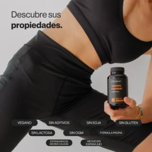 Enriquecida con Piperina (95%): El extracto de pimienta negra es el «vehículo» indispensable que permite que la curcumina atraviese la barrera intestinal y llegue al torrente sanguíneo de forma efectiva.